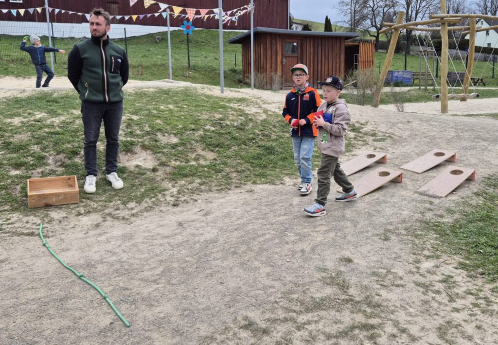 Auf unserem großen Spielplatz konnte nicht nur getobt, geklettert und geschaukelt werden. Sondern auch ein neues Zielwurf-Spiel „Cornhole“ ausgetestet und kleine Preise ergattert werden.