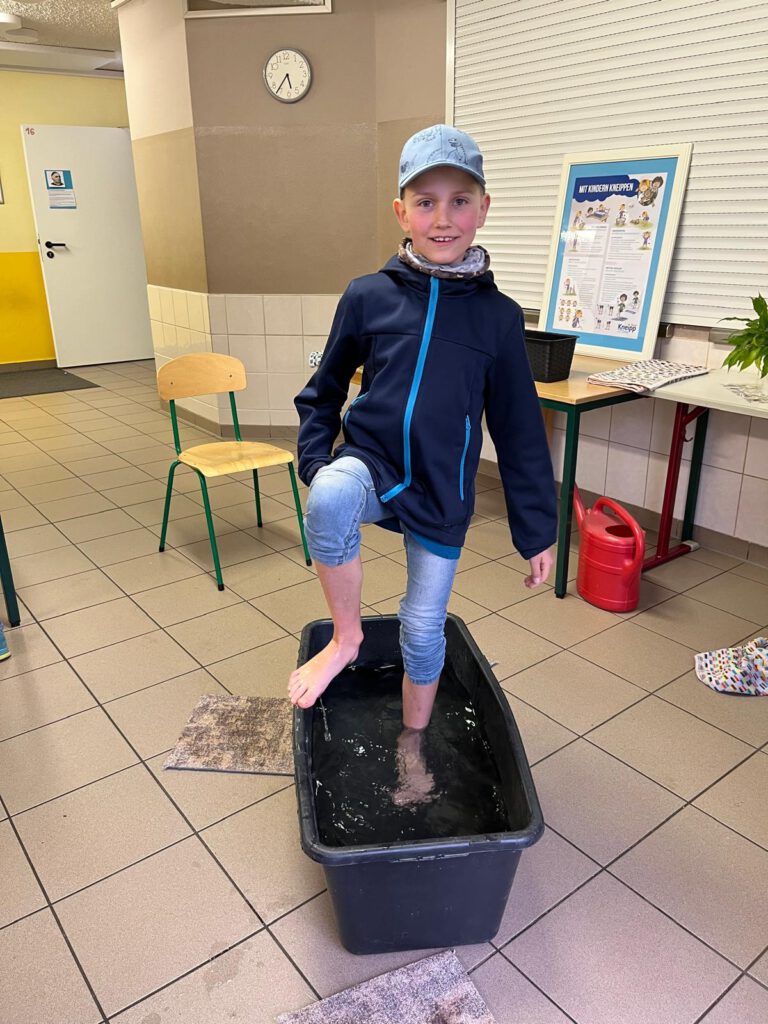 Besonders beliebt dabei war unsere Kneipp-Station. Als neueste Besonderheit unserer Einrichtung wollen wir den Kindern einen bewussten Umgang mit ihrer Gesunderhaltung durch die kneippschen Methoden vermitteln. Dabei konnten die Kinder sich im Wassertret-Becken, auf dem Barfußpfad und dem Kennenlernen verschiedener Kräuter ausprobieren.